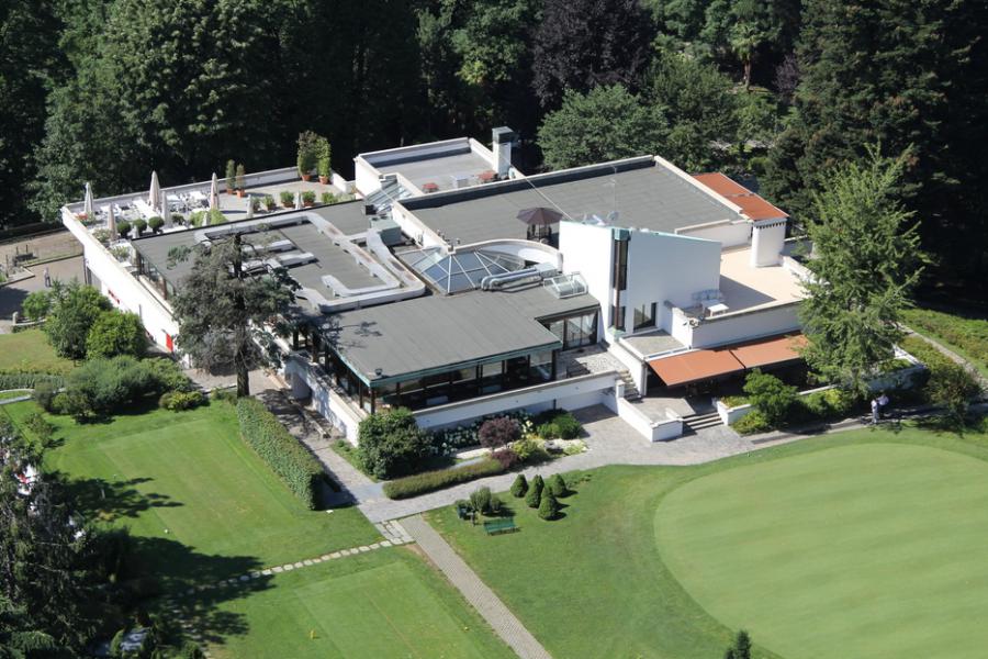 Magistretti e Veneziani progettano una club house che nulla ha del cottage all’inglese o della casa di campagna: nasce infatti un volume bianco e che segue l’andamento del terreno, con finestre e tagli che inquadrano il paesaggio e i grandi alberi del parco.
